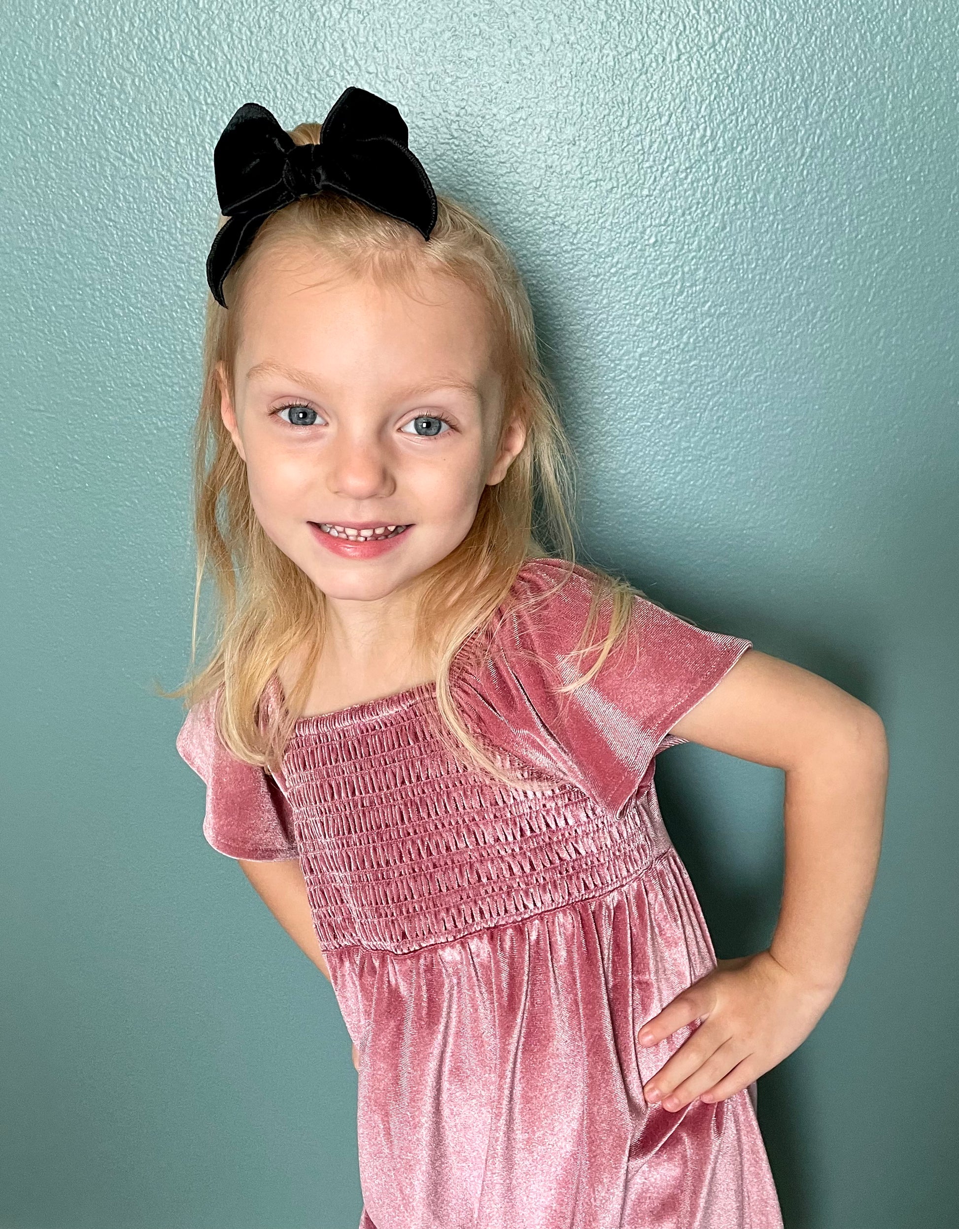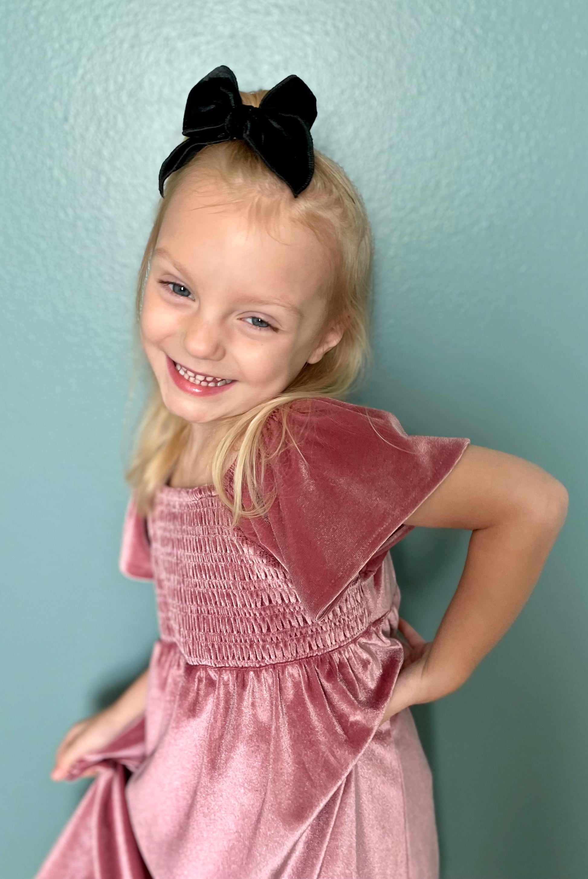 Hand-tied sailor-style bow on clip. Approximately 4 inches wide and 3.5 inches long.