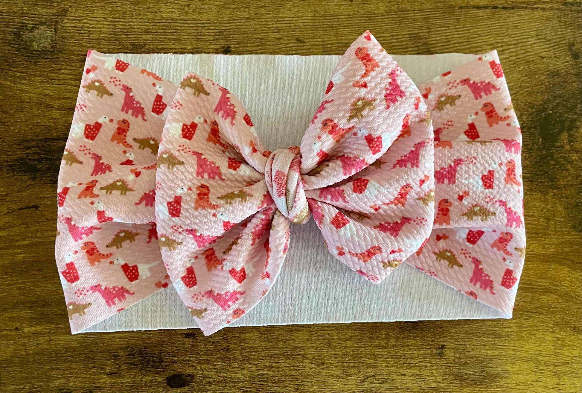 Super soft, stretchy fabric head wrap bow. Fits best ~3 months to 3 years.