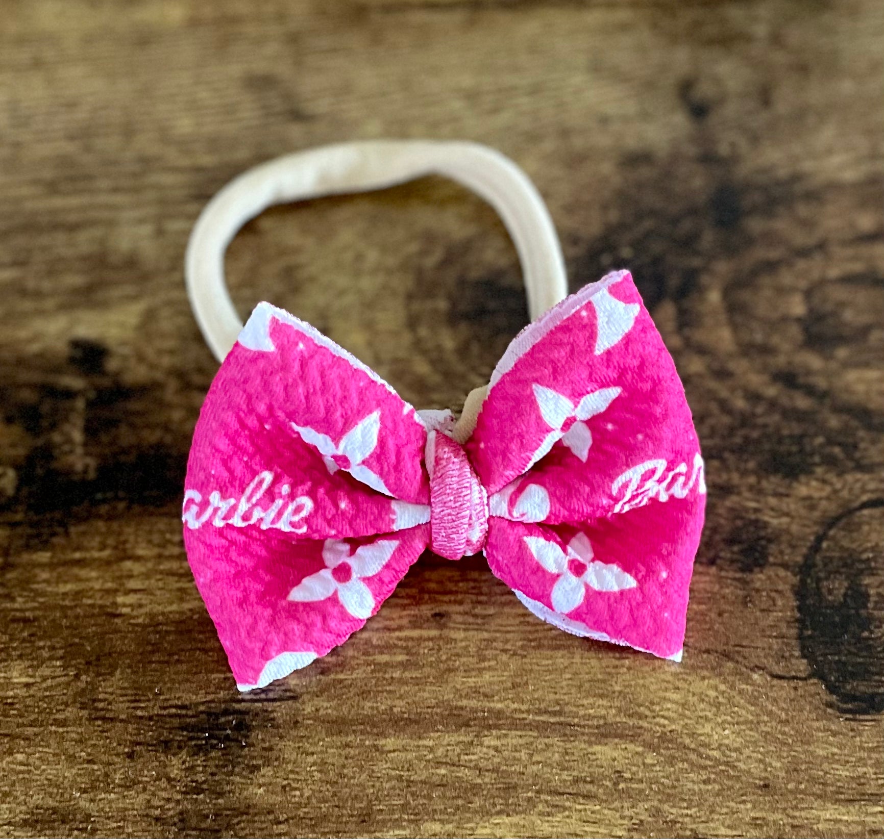 Super soft fabric bow, 2.5 inch, on a stretchy nylon band. Fits newborn to adults. Perfect for newborns or those looking for a smaller accessory!