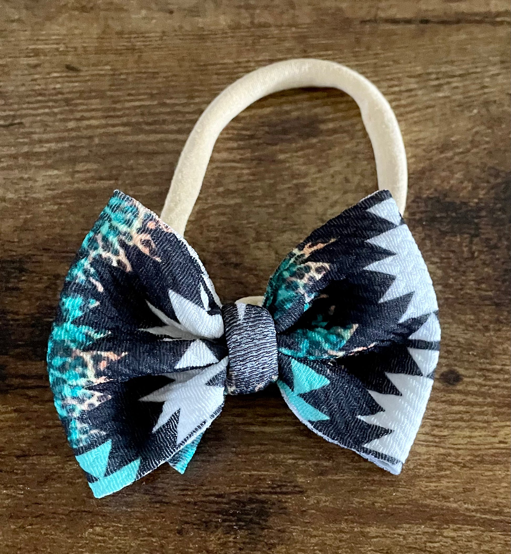 Super soft fabric bow, 2.5 inch, on a stretchy nylon band. Fits newborn to adults. Perfect for newborns or those looking for a smaller accessory!